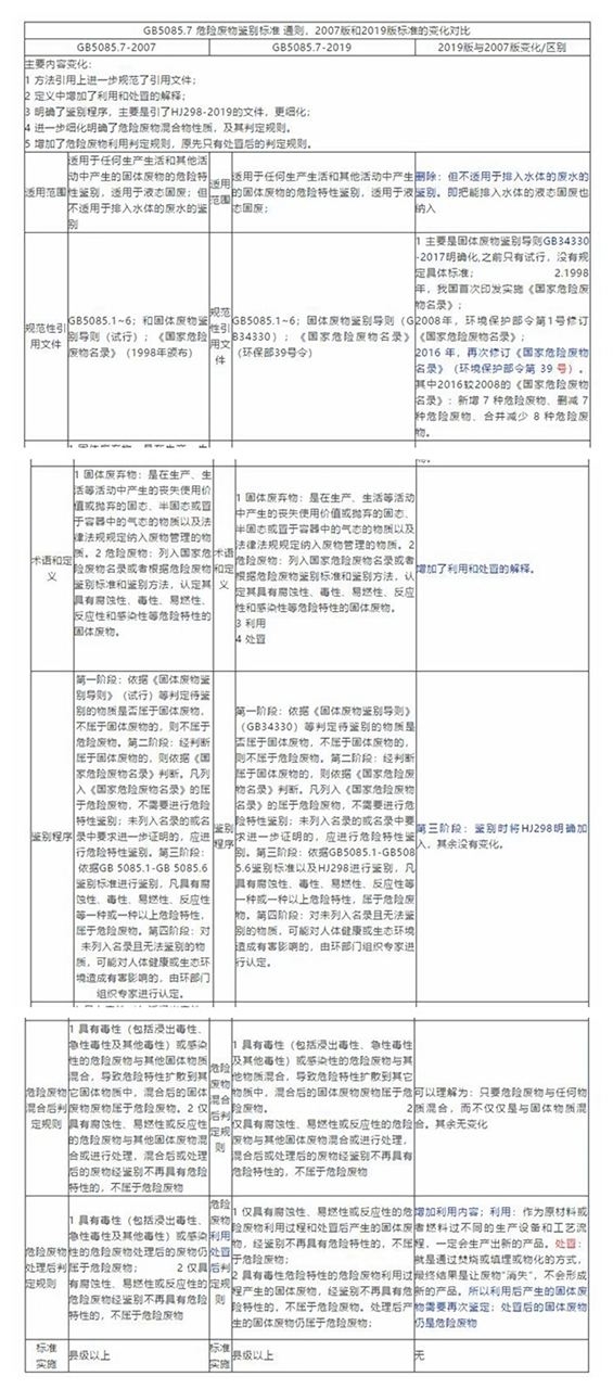 附:GB5085.7 危險(xiǎn)廢物鑒別標(biāo)準(zhǔn) 通則,2007版和2019版標(biāo)準(zhǔn)的變化對(duì)比