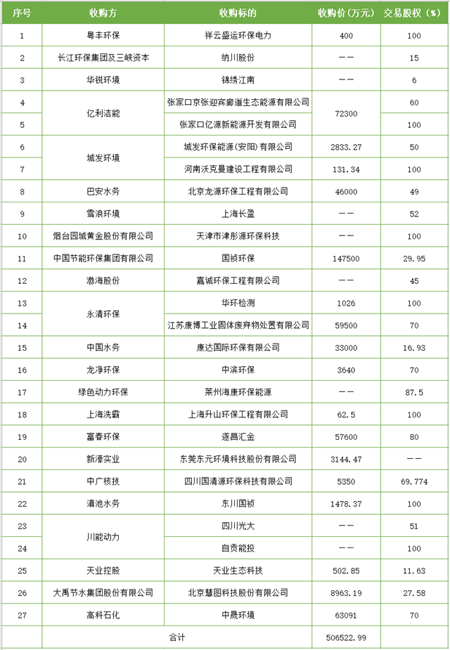 本文對上半年主要的環(huán)保股權(quán)更迭事件進(jìn)行簡要梳理(僅供參考):