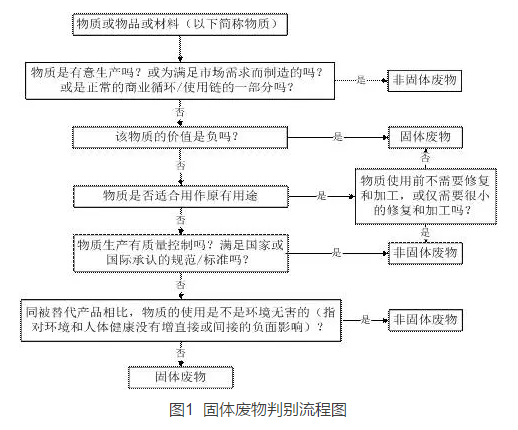 導(dǎo)則第三部分列出了“固體廢物與非固體廢物判別流程圖”(見圖1),該“流程圖”有5層判斷項(xiàng),其中有4個判斷項(xiàng)可以得出“非固體廢物”的屬性。其中在第2項(xiàng)判斷為“有價值”的基礎(chǔ)上的后續(xù)3個判斷,可以看做對于廣義價值的選擇和控制。即“基本保留原有用途的價值+符合相關(guān)產(chǎn)品標(biāo)準(zhǔn)+可直接用作替代產(chǎn)品,且使用過程環(huán)境無害”。