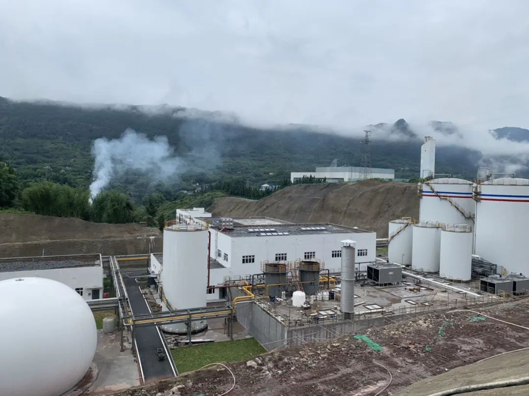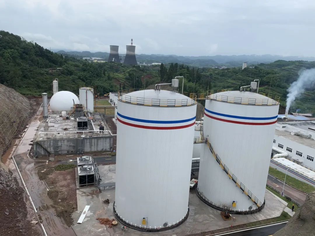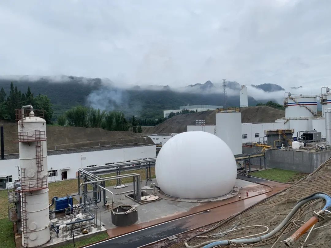 現(xiàn)場(chǎng)的設(shè)備涉及到厭氧罐、調(diào)節(jié)罐、中儲(chǔ)罐、干式脫硫塔、沼氣儲(chǔ)罐、脫氮罐、火炬、MBR膜系統(tǒng)、熱平衡系統(tǒng)等。如圖所示: