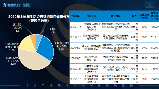 2019年上半年,企業(yè)平均每月中標(biāo)13個(gè)生活垃圾焚燒項(xiàng)目,今年上半年平均每月中標(biāo)8個(gè)焚燒項(xiàng)目,生活垃圾焚燒項(xiàng)目釋放增速放緩。薛濤院長(zhǎng)曾在2019年固廢論壇上預(yù)測(cè),2019年是焚燒項(xiàng)目釋放(市場(chǎng)化)最多的一年。2020年上半年焚燒市場(chǎng)得到印證,2020年下半年焚燒市場(chǎng)如何,我們拭目以待。