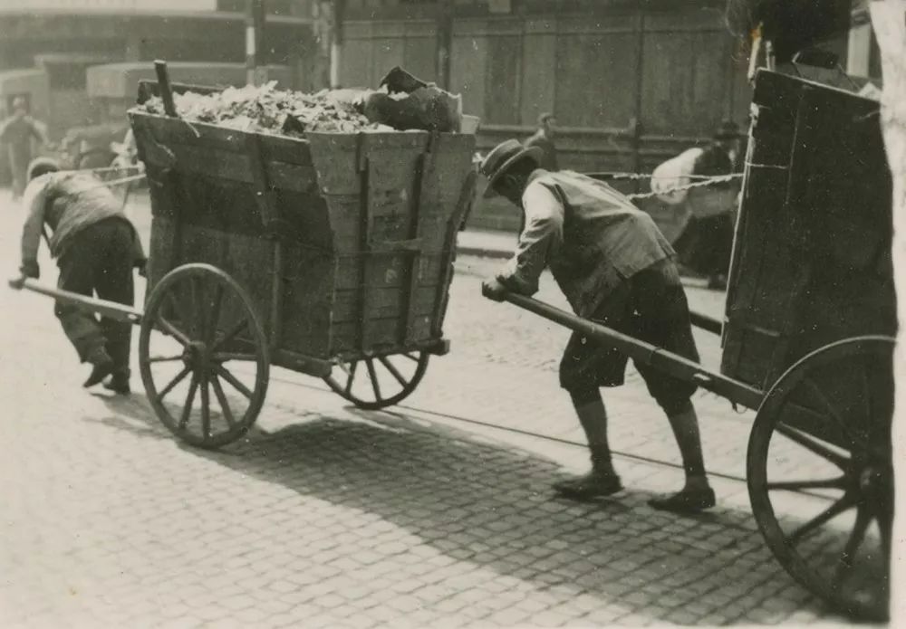 20世紀30年代,上海街頭的清道夫及垃圾收集車輛