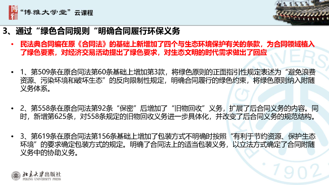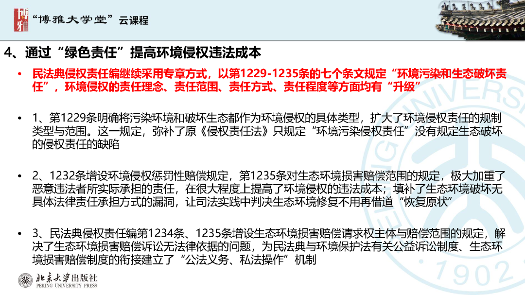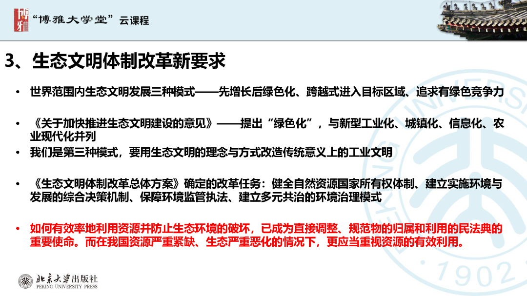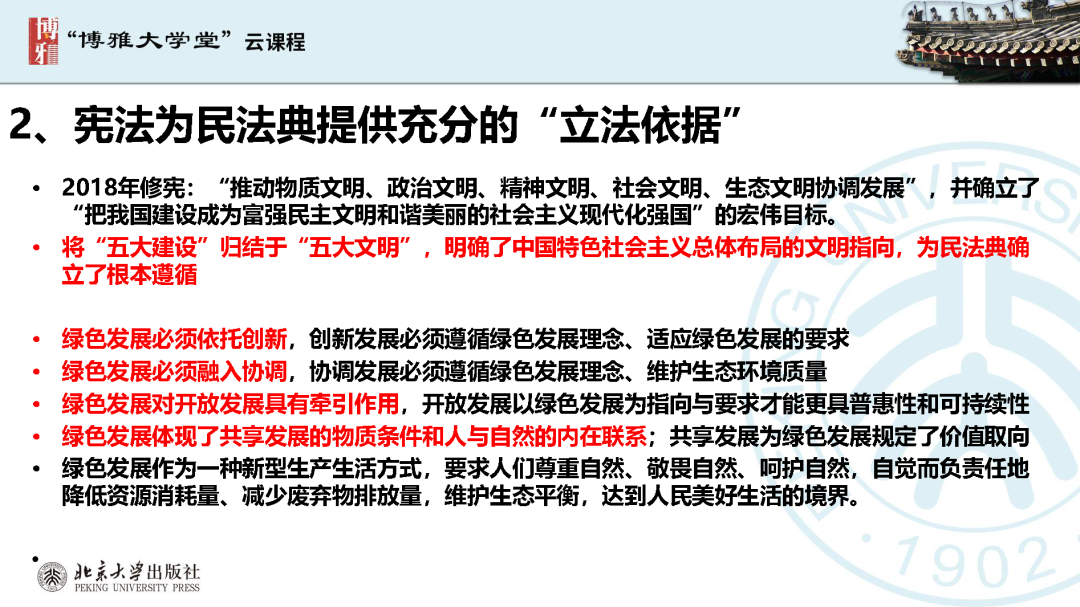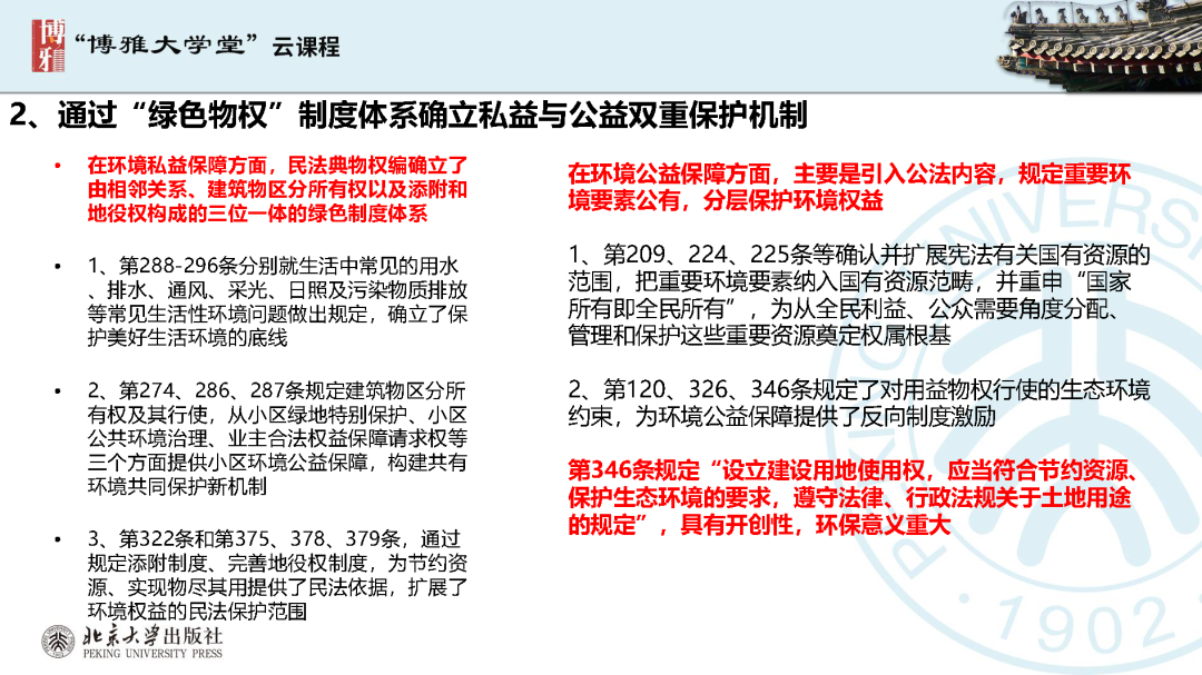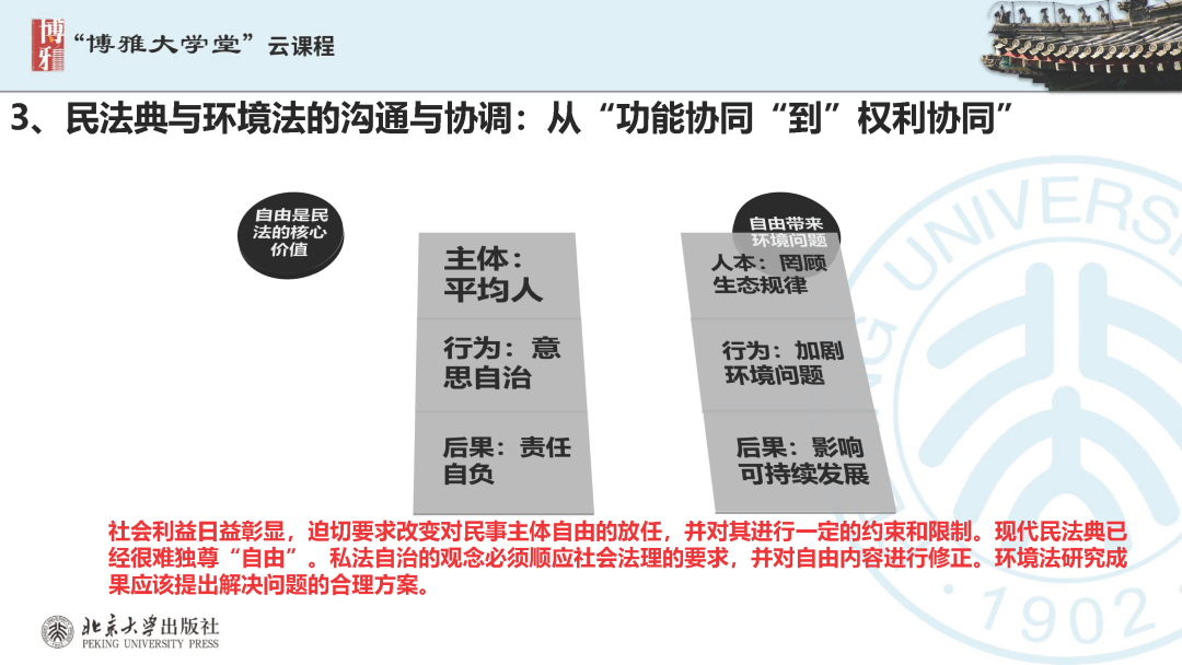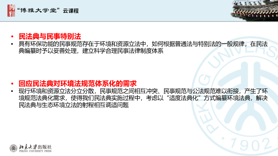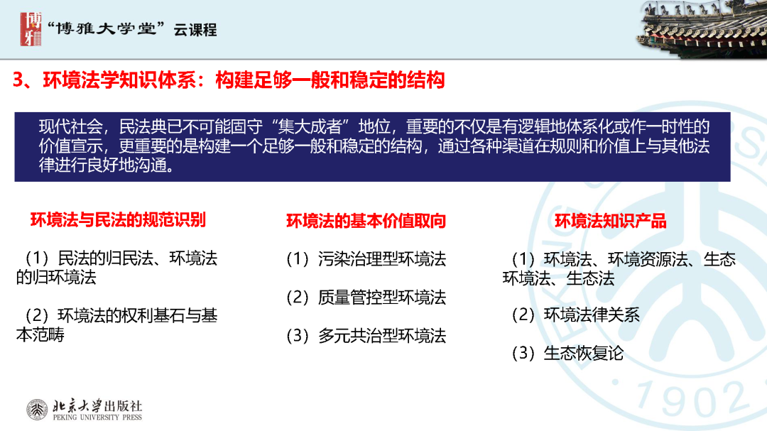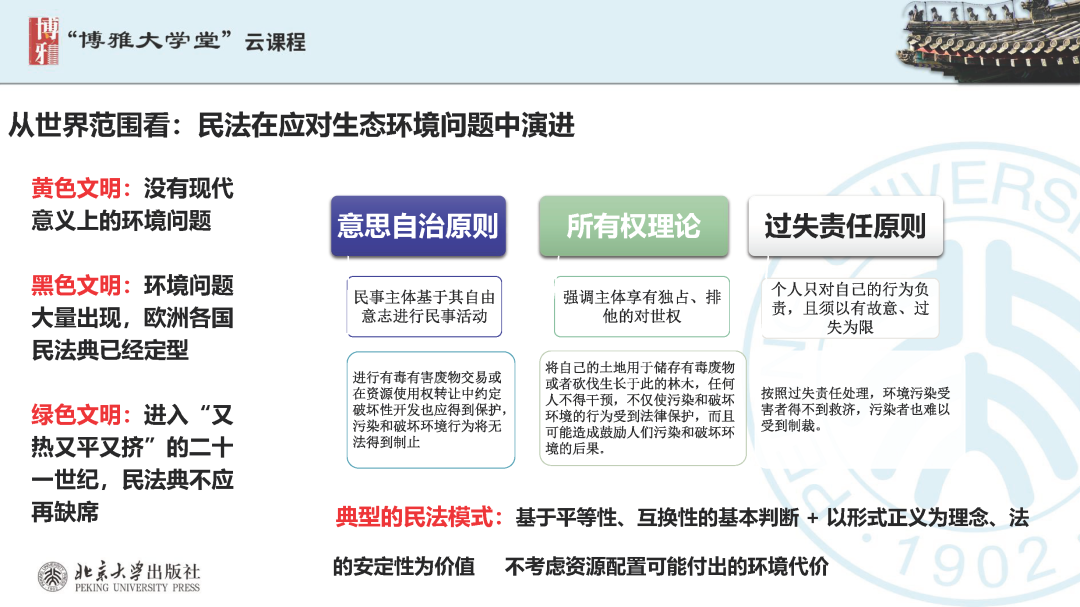本文為呂忠梅老師在博雅大學(xué)堂上的報(bào)告。題目為《綠色民法典實(shí)施:環(huán)境法的機(jī)遇與挑戰(zhàn)》。內(nèi)容主要涉及民法典為什么要綠色化、民法典的綠色規(guī)則體系及綠色民法典給環(huán)境法帶來(lái)的新機(jī)遇和新挑戰(zhàn)。