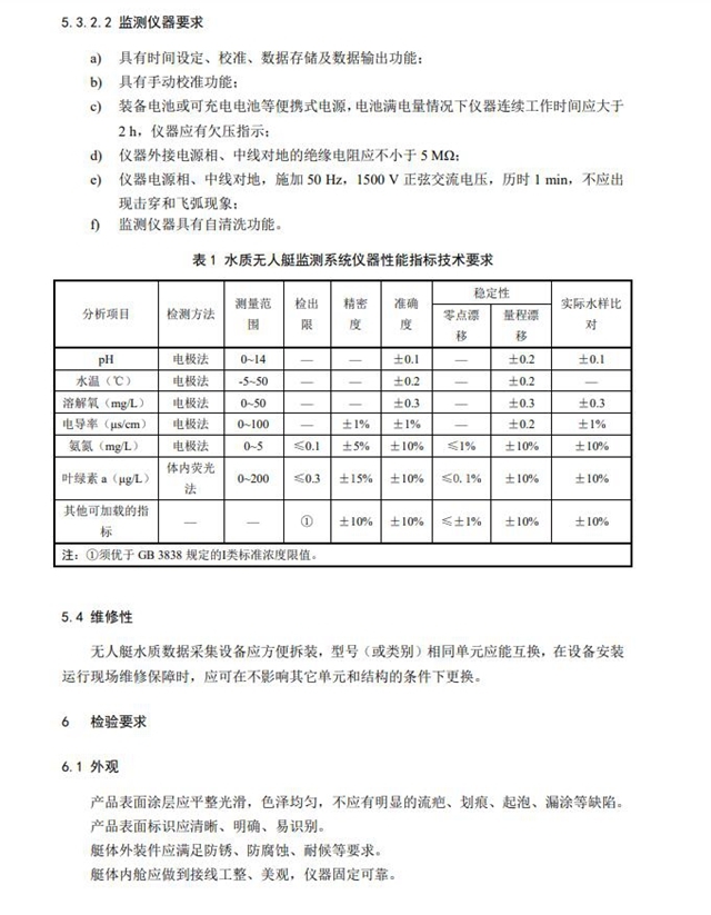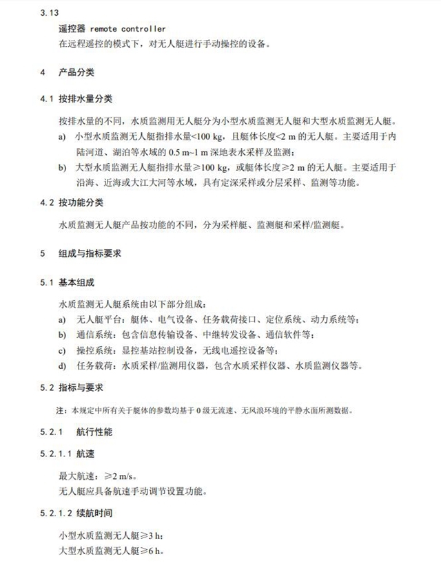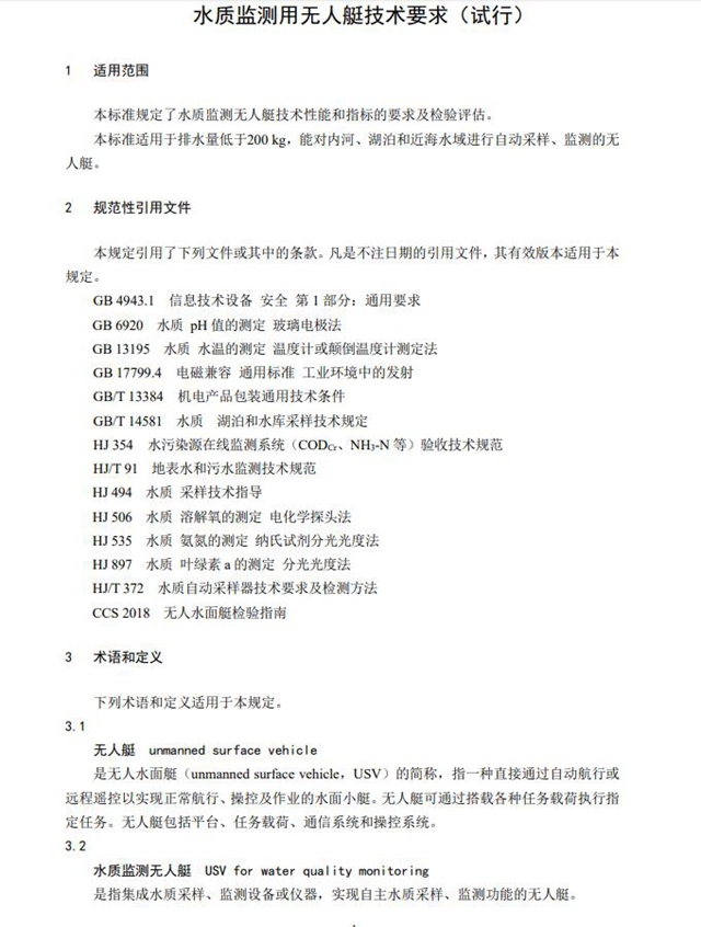 2.水質(zhì)監(jiān)測用無人艇技術(shù)要求(試行)(征求意見稿)