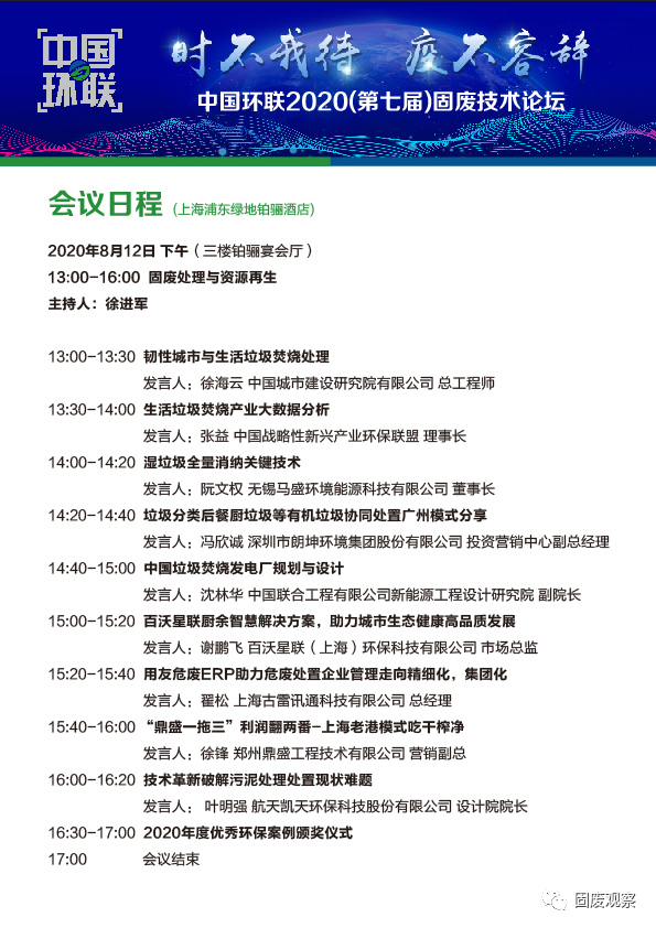 固廢技術(shù)論壇時(shí)間:2020年8月12日