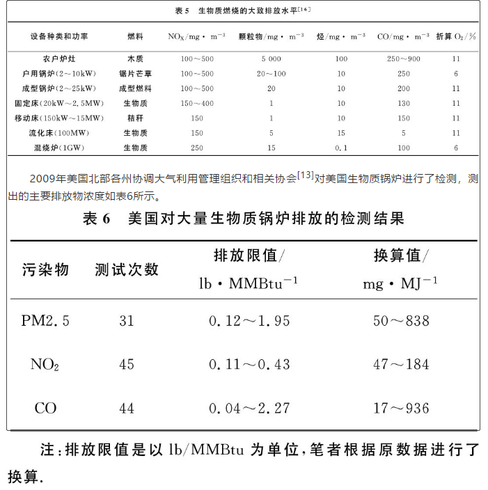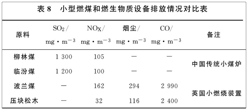 國內(nèi)外現(xiàn)有生物質(zhì)燃燒設(shè)備排放情況及與小型煤爐對比