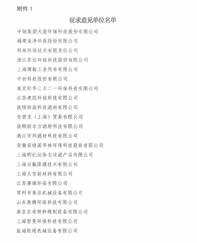 2.《袋式除塵器 濾袋技術要求(征求意見稿)》