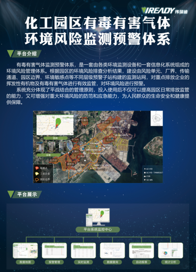 特別是在生態(tài)環(huán)境部發(fā)布的《2020年揮發(fā)性有機物治理攻堅方案》的要求下,偉瑞迪提出的VOCs在線監(jiān)測與環(huán)境風險預(yù)警一體化解決方案不僅貼合實際需求,對有組織排放和無組織排放多方位有效監(jiān)管,而且能夠解決園區(qū)污染種類多、環(huán)境敏感點多、環(huán)境風險壓力大的問題。