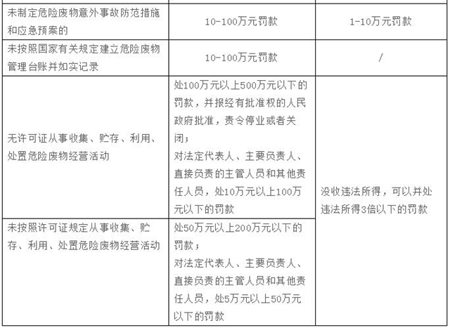 新《固廢法》對法律責(zé)任專章進(jìn)行了擴(kuò)充完善,加大了對固廢管理不合規(guī)的處罰力度,增加了企業(yè)的違法成本。除了對新增內(nèi)容設(shè)定了相應(yīng)罰則外,還普遍提高了違法行為的處罰金額,最高可罰至500萬元,并且增加了按日連續(xù)處罰、行政拘留、查封扣押等執(zhí)法措施,這些嚴(yán)格的法律責(zé)任變化也值得企業(yè)特別關(guān)注。