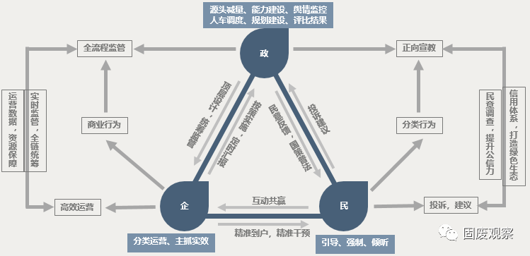當(dāng)前,政、企、民三方各司其職,共同推進(jìn)垃圾分類。政府層面聚焦頂層規(guī)劃,企業(yè)著力于高效運(yùn)營,居民端發(fā)動(dòng)全民參與。聯(lián)運(yùn)環(huán)境從企業(yè)角度分析了在此情況下,如何在政企民協(xié)同發(fā)展中嵌入信息化系統(tǒng),打造信息化閉環(huán)。