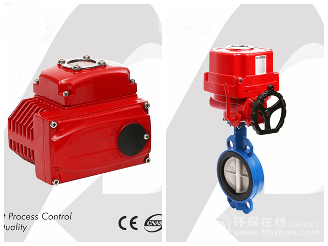 圖為電動執(zhí)行器(左)與紅色防爆電動對夾蝶閥(右)
