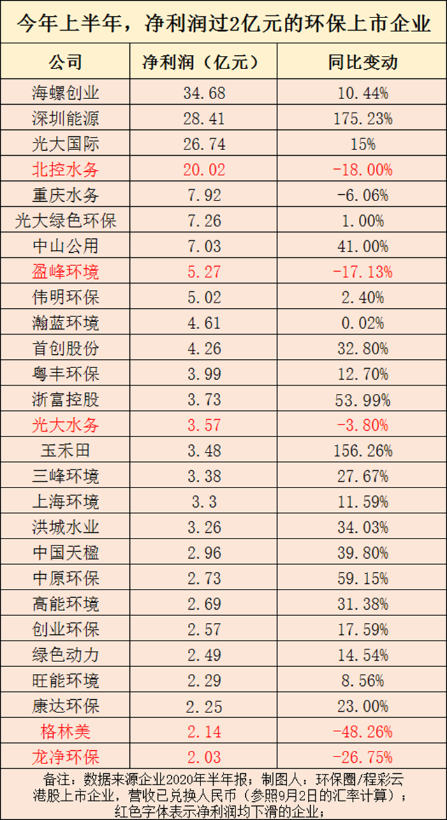 3 凈利潤榜:約5成企業(yè)負(fù)增長,碧水源增速行業(yè)第一