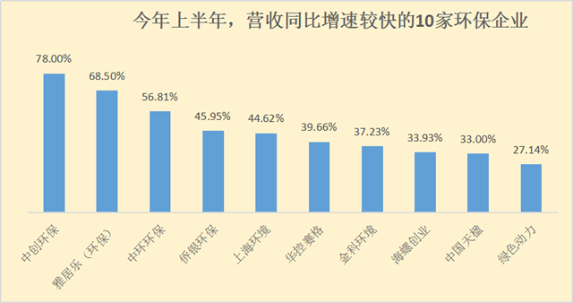 這一點(diǎn),在今年上半年?duì)I收、凈利潤同比增速較快的環(huán)保企業(yè)中均有體現(xiàn)。