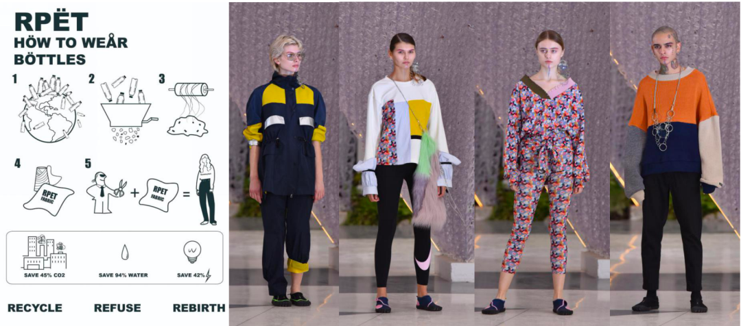 因此,我們用領先世界的速度,研發(fā)出了最新的工藝技術(shù),把這些海洋塑料回收粉碎,變成最基礎的再造面料。
