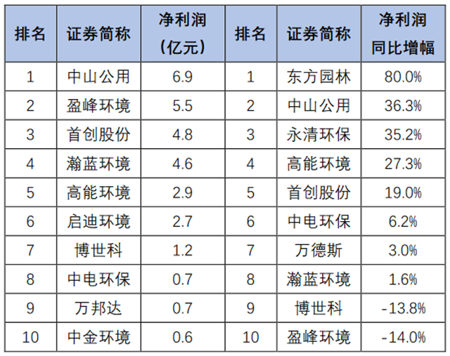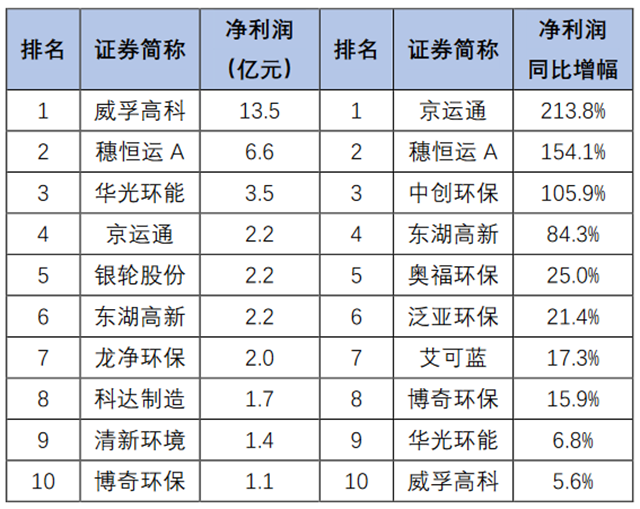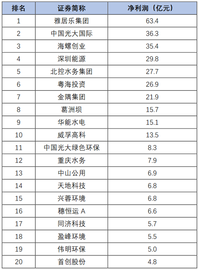 2020年上半年163家(A股+港股)環(huán)保上市公司凈利潤TOP20