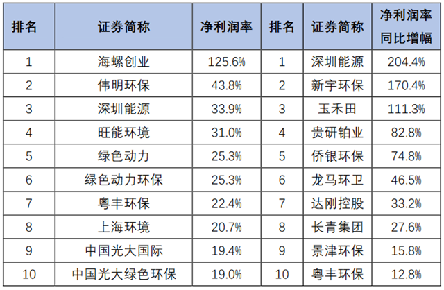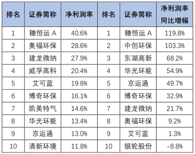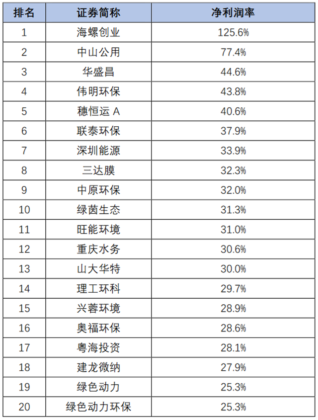 2020年上半年163家(A股+港股)環(huán)保上市公司凈利潤率TOP20