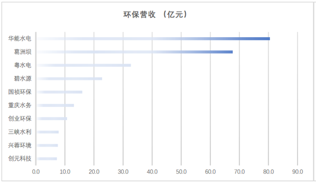 2020年上半年水務(wù)A股環(huán)保上市公司環(huán)保營收TOP10