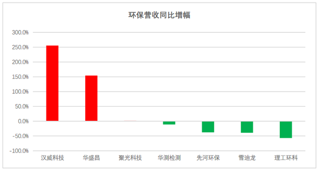 2020年上半年環(huán)境監(jiān)測與檢測A股環(huán)保上市公司環(huán)保營收同比增幅排名