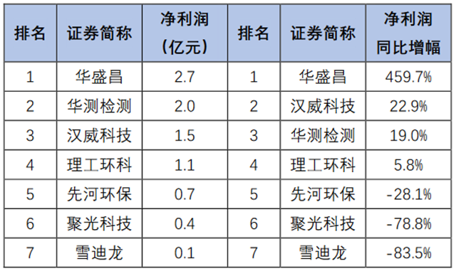 2020年上半年環(huán)境監(jiān)測與檢測A股環(huán)保上市公司凈利潤及其同比增幅排名