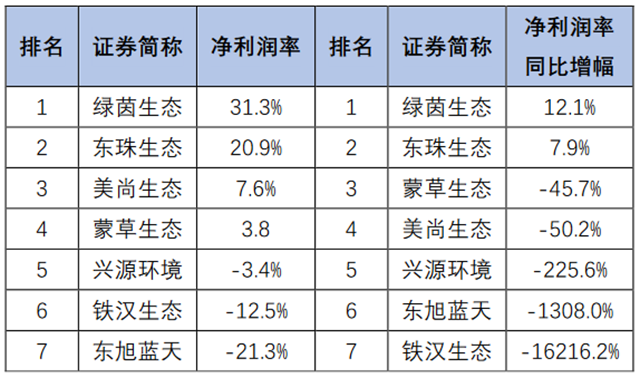 總體來看,環(huán)保上市公司獲利表現(xiàn)不及2019年同期,凈利潤總額和平均凈利潤率均低于上年同期。