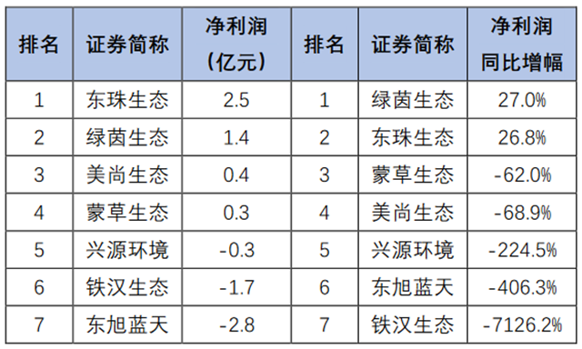 2020年上半年環(huán)境修復(fù)A股環(huán)保上市公司凈利潤及其同比增幅排名