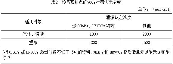 b)密封點的VOCs泄漏檢測值超過表2規(guī)定的泄漏認定濃度值。