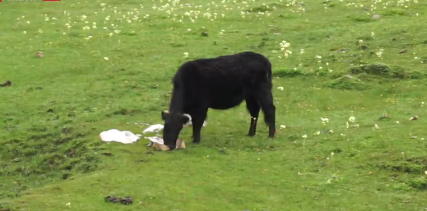 Sir最近看到了一個(gè)視頻,來(lái)高原江南,西藏林芝。天蒼蒼,野茫茫,草地上一頭牦牛,低頭啃食著的不是草料。