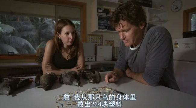 最讓人震撼的一幕,是科學(xué)家們用剪刀把死去的海鳥(niǎo)胃部剪開(kāi),映入眼簾的是密密麻麻的塑料。