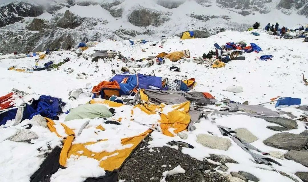 本來(lái)舉手之勞就可以帶走的垃圾,被扔在了“世界屋脊”上。自1953年新西蘭探險(xiǎn)家埃德蒙·希拉里,和夏爾巴人向?qū)Уぴ觥ぶZ爾蓋首次登上珠峰開(kāi)始,珠峰大本營(yíng)每年都將迎來(lái)上萬(wàn)人次的挑戰(zhàn)者。