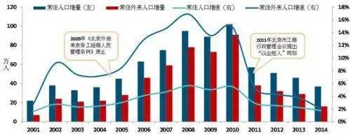 從2010年開(kāi)始,為應(yīng)對(duì)外來(lái)人口過(guò)快增長(zhǎng),北京出臺(tái)一系列人口調(diào)控組合拳,從此之后,北京外來(lái)人口增速一直呈現(xiàn)下降態(tài)勢(shì)。后來(lái),隨著北京城市規(guī)劃中對(duì)勞動(dòng)密集型產(chǎn)業(yè)的壓縮和外遷,廢品回收產(chǎn)業(yè)被列入被禁止建設(shè)的行業(yè),北京市再生資源回收遇到了前所未有的寒冬,北京五環(huán)到六環(huán)之間的廢品分類(lèi)和交易市場(chǎng)在數(shù)月期間消失。