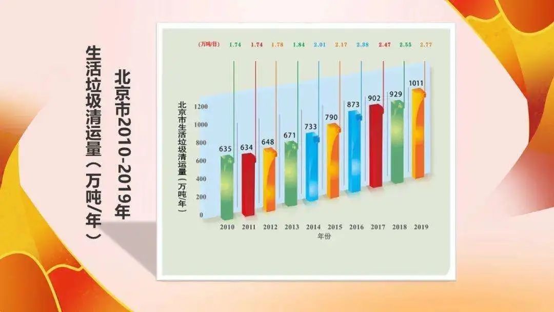 2011年后,也就是人口調(diào)控之后,趨勢(shì)開(kāi)始變化,生活垃圾量轉(zhuǎn)為上升勢(shì)頭。2012年,垃圾達(dá)648.31萬(wàn)噸,2013年672萬(wàn)噸,到2018年,北京的垃圾產(chǎn)生量達(dá)到了901.8萬(wàn)噸。