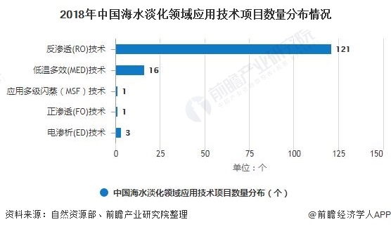目前,海水淡化是反滲透膜技術(shù)應(yīng)用的重要領(lǐng)域之一。從全國(guó)海水淡化領(lǐng)域應(yīng)用技術(shù)的項(xiàng)目數(shù)量分布來看,根據(jù)自然資源部數(shù)據(jù)顯示,截至2018年底,全國(guó)應(yīng)用反滲透(RO)技術(shù)的工程121個(gè),占總項(xiàng)目數(shù)量的85.21%,高居首位;其次是應(yīng)用低溫多效(MED)技術(shù)的工程16個(gè),占比為11.27%。