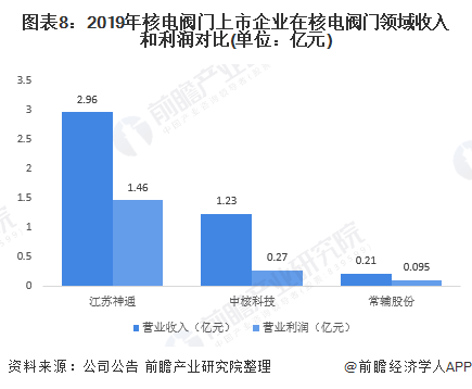 從上市的核電閥門企業(yè)分析,2019年江蘇神通在核電閥門產(chǎn)品中實(shí)現(xiàn)營(yíng)業(yè)收入2.96億元,營(yíng)業(yè)利潤(rùn)1.46億元,相較于中核科技和常輔股份而言擁有較大的銷售競(jìng)爭(zhēng)力。