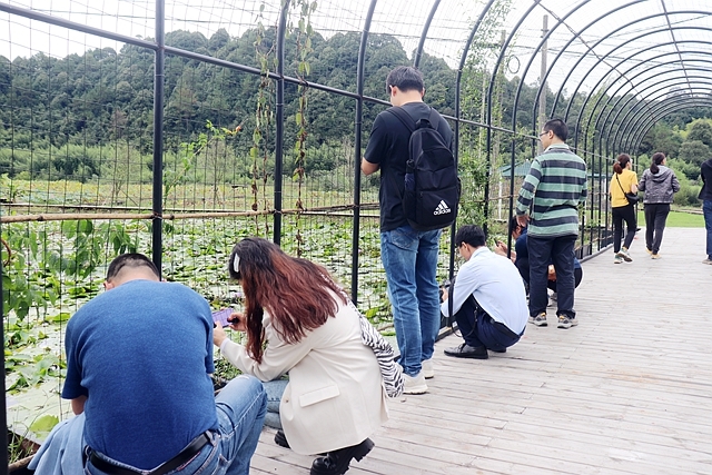(圖片來源:天創(chuàng)環(huán)境 授權(quán)發(fā)布,版權(quán)歸原作者所有) 當(dāng)然,作為水處理行業(yè)的從業(yè)者,一路行來,與會成員自然而然會更加關(guān)注水質(zhì)情況,時不時進(jìn)行交流和探討。行至水塘邊,也會忍不住被滿池綠波所吸引,即使過了鮮花怒放的時節(jié),依舊不減看到池清草長的熱情。