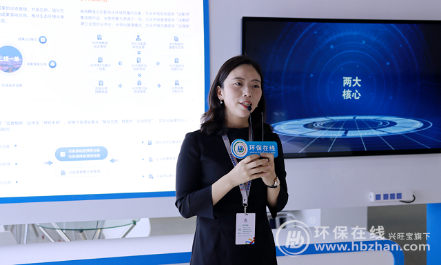 綠創(chuàng)科技高級項目經(jīng)理徐曼著重介紹了公司的集水質(zhì)預(yù)警與溯源于一體水污染防治系統(tǒng)、推動生態(tài)環(huán)境從單一監(jiān)管型向立體管控型轉(zhuǎn)變的三線一單”數(shù)據(jù)管理系統(tǒng)。