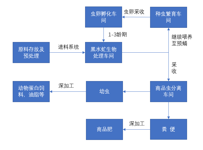 單就養(yǎng)殖技術(shù)來(lái)說(shuō),雖然控制有一定困難,但技術(shù)沒(méi)有多高的壁壘。再?gòu)拇笠?guī)模養(yǎng)殖的工程化角度來(lái)講,還有很多需要研究和優(yōu)化的地方。比如:整個(gè)養(yǎng)殖過(guò)程,涉及到的物料有餐廚垃圾、輔料、一齡期物料、蟲(chóng)沙等,不同物料的臨時(shí)存儲(chǔ)、預(yù)處理、輸送、布料,都需要設(shè)計(jì)和考慮。預(yù)處理無(wú)機(jī)雜物的分揀,如玻璃、瓷器、塑料、餐具等,需要在一定程度上進(jìn)行考慮。物料的輸送和布料需要考慮,如何精準(zhǔn)的將物料輸送,并均勻平鋪到各個(gè)養(yǎng)殖層架上?又如何實(shí)現(xiàn)幼蟲(chóng)和蟲(chóng)糞的自動(dòng)化分離?如何實(shí)現(xiàn)預(yù)蛹的自動(dòng)化采收?當(dāng)然,純粹從技術(shù)角度來(lái)講,自動(dòng)化問(wèn)題也并非不可逾越,但是從商業(yè)角度,投資回報(bào)率也同樣重要,能否實(shí)現(xiàn)收益以及回報(bào)周期,才決定著投資的動(dòng)力。從黑水虻的生長(zhǎng)環(huán)境規(guī)劃上講,至少要分為原料及預(yù)處理車間、蟲(chóng)卵孵化車間、幼蟲(chóng)處理廢棄物車間、幼蟲(chóng)分離車間、成蟲(chóng)繁育車間等。黑水虻幼蟲(chóng)需要在濕度60%,溫度28℃等條件下生長(zhǎng)。成蟲(chóng)需要在干燥環(huán)境并有縫隙處產(chǎn)卵,而且要根據(jù)蟲(chóng)體的不同生長(zhǎng)階段,對(duì)其進(jìn)行轉(zhuǎn)移。同時(shí),因?yàn)榇x過(guò)程產(chǎn)物會(huì)以廢氣和水蒸氣排出,所以項(xiàng)目現(xiàn)場(chǎng)的除濕和換氣需要相關(guān)的設(shè)計(jì)和研究。這就需要從整體角度,對(duì)整個(gè)黑水虻養(yǎng)殖項(xiàng)目的廠房、物料的輸送轉(zhuǎn)運(yùn)、可能產(chǎn)生的二次污染的處理設(shè)施,進(jìn)行合理的規(guī)劃和布局。