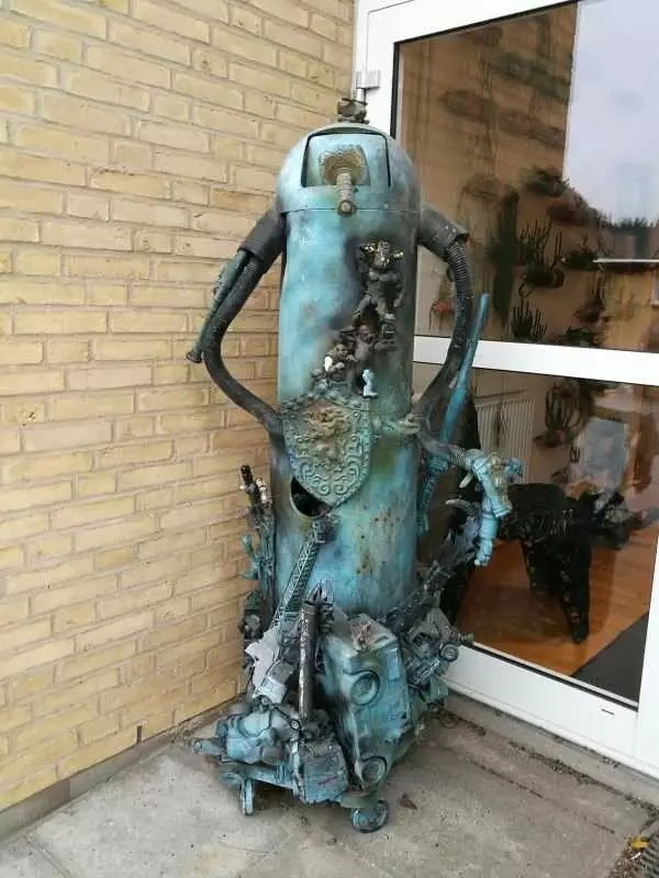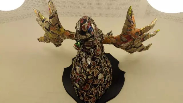 辦公室門口拜訪著一個(gè)利用廢棄物制作的小機(jī)器人模型