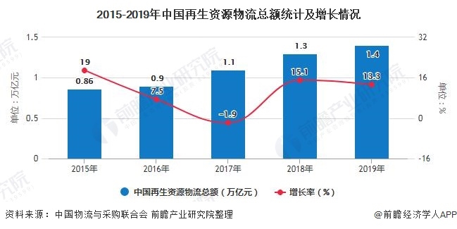 根據(jù)中國(guó)物流與采購(gòu)聯(lián)合會(huì)數(shù)據(jù),2015-2019年我國(guó)再生資源物流總額穩(wěn)步增長(zhǎng)。2019年,再生資源物流總額達(dá)到1.4萬(wàn)億元,按照可比口徑,增長(zhǎng)13.3%,國(guó)內(nèi)再生資源物流行業(yè)快速發(fā)展。