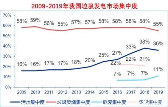 垃圾發(fā)電市場集中度基本在55-60%,當(dāng)前頭部集中趨勢明顯:資金實(shí)力強(qiáng)、融資成本低、運(yùn)營/成本控制能力強(qiáng)的企業(yè)逐漸擴(kuò)大了市場影響力,做大做強(qiáng);加上國家環(huán)保趨勢、補(bǔ)貼新政和市場下沉,使得龍頭企業(yè)競爭更加集中;