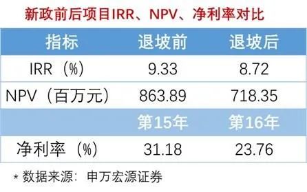 新政補(bǔ)貼退坡,導(dǎo)致內(nèi)部收益率和凈利率下降