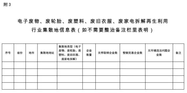 各省(區(qū)、市)按照清理整頓實施方案,先期開展本行政區(qū)域內(nèi)專項清理整頓摸排工作,并于2017年9月30日前將本省(區(qū)、市)再生利用企業(yè)信息表(集散地外)和集散地信息表(見附2、3)分別報送環(huán)境保護部、發(fā)展改革委、工業(yè)和信息化部、公安部、商務部和工商總局。