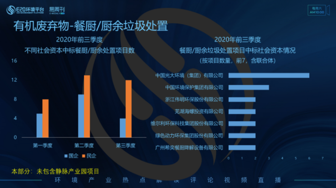 據(jù)E標(biāo)通獲悉,前三季度共計(jì)39家企業(yè)(聯(lián)合體形式只計(jì)算聯(lián)合體牽頭人)中標(biāo)51個(gè)餐廚/廚余處置項(xiàng)目。右圖為2020年前三季度餐廚/廚余垃圾處置項(xiàng)目中標(biāo)社會(huì)資本排名情況,焚燒巨頭光大環(huán)境和中國(guó)環(huán)境保護(hù)位居前二。