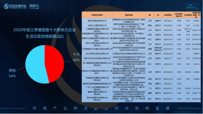 將固廢十大影響力企業(yè)2020年前三季度的生活垃圾焚燒業(yè)績(jī)進(jìn)行匯總,其占整個(gè)市場(chǎng)的46%。右表所展示的為2020年前三季度生活垃圾焚燒項(xiàng)目單體設(shè)計(jì)能力在1000噸/日-2000噸/日的項(xiàng)目列表。