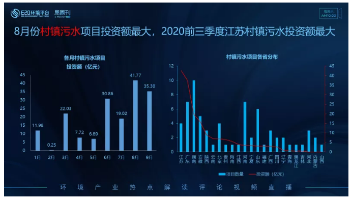 左圖為各月村鎮(zhèn)污水類項目釋放情況,8月釋放的村鎮(zhèn)污水類項目投資額最大,其次是9月份。