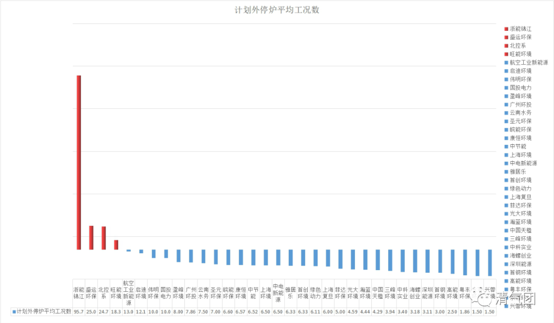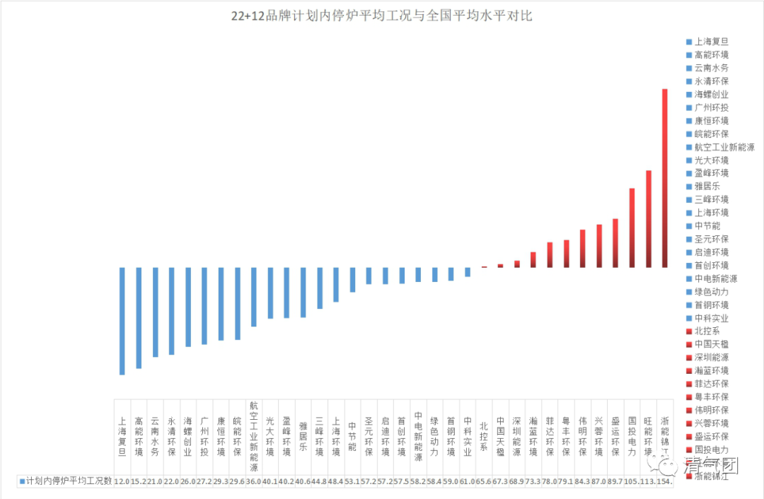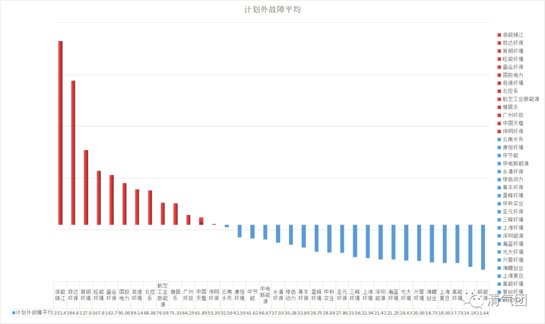 如果將這些22+12=34家品牌混合評(píng)定,研究團(tuán)隊(duì)發(fā)現(xiàn)。計(jì)劃內(nèi)停爐次數(shù),低于全國平均水平,排名前五低的品牌,分別為,上海復(fù)旦、高能環(huán)境、云南水務(wù)、永清環(huán)保、海螺創(chuàng)業(yè),其中有四家是“跨界”品牌。計(jì)劃外停爐次數(shù),低于全國水平的,排名前五低的企業(yè),分別為,永清環(huán)保、興蓉環(huán)境、粵豐環(huán)保、高能環(huán)境、首鋼環(huán)境。依然有四家是“跨界”品牌。故障天次,低于全國水平,排名前五低的企業(yè),分別為,皖能環(huán)保、首創(chuàng)環(huán)境、高能環(huán)境、上海復(fù)旦、海螺創(chuàng)業(yè)。其中有兩家為“跨界”品牌。綜合來看,高能環(huán)境、永清環(huán)保和上海復(fù)旦、興蓉環(huán)境等四家“跨界”品牌,在工況指標(biāo)上,比較資深品牌毫不遜色,甚至部分指標(biāo)略有領(lǐng)先。雅居樂、盈峰環(huán)境、云南水務(wù)、中科實(shí)業(yè)等四家品牌,表現(xiàn)相對(duì)中規(guī)中矩,與資深品牌持平。研究團(tuán)隊(duì)希望上述品牌能夠繼續(xù)保持較良好的運(yùn)維水平,也希望排名靠后的品牌,能夠認(rèn)真重視自身存在的問題,努力改進(jìn)運(yùn)維思路,提升運(yùn)營水平。