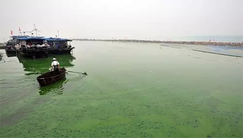 7月29日,記者在巢湖西半湖看到有專業(yè)人員在打撈湖里的藍(lán)藻。藍(lán)藻的出現(xiàn)無疑證明巢湖有污染。對此,李煒并不否認(rèn),他說,巢湖整體水質(zhì)屬于五類。