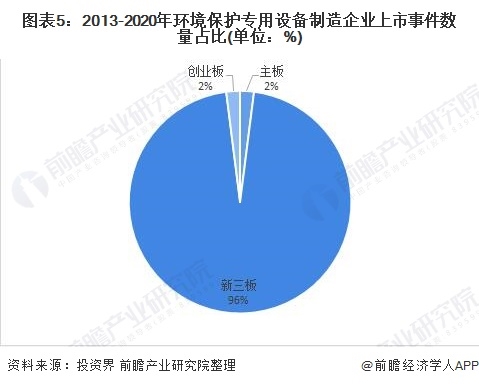 從環(huán)境保護專用設備制造行業(yè)企業(yè)上市分布來看,近幾年主要集中在新三板上市;因目前我國環(huán)境保護專用設備行業(yè)中企業(yè)實力總體偏弱,相對于其他上市板塊來說,新三板上市門檻較低,因此成為大部分環(huán)境保護專用設備制造行業(yè)企業(yè)上市的首選。
