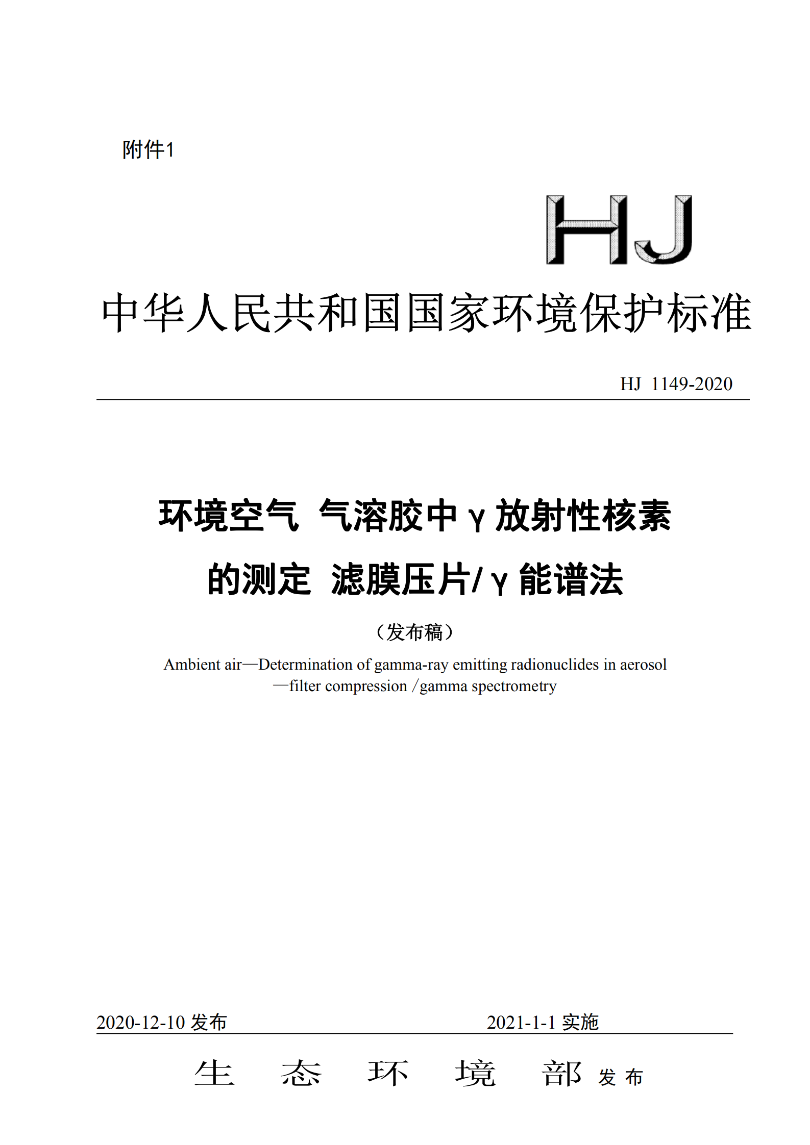 相關資料下載:環(huán)境空氣 氣溶膠中γ放射性核素的測定.pdf