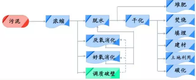 從流程上看污泥需要經(jīng)過濃縮、調(diào)質(zhì)、脫水、穩(wěn)定、干化或焚燒等多道工序。