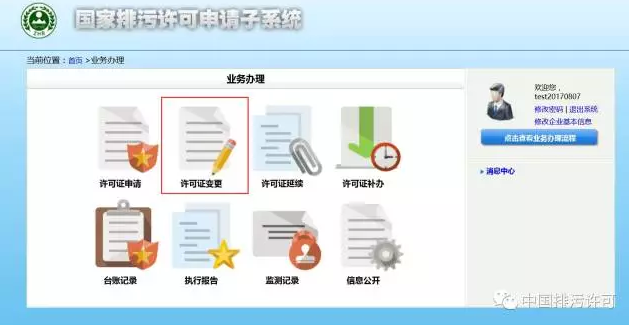 已經(jīng)取得排污許可證的排污單位可登錄國家排污許可申請子系統(tǒng),在業(yè)務(wù)辦理板塊選擇“許可證變更”模塊,申請變更排污許可證。